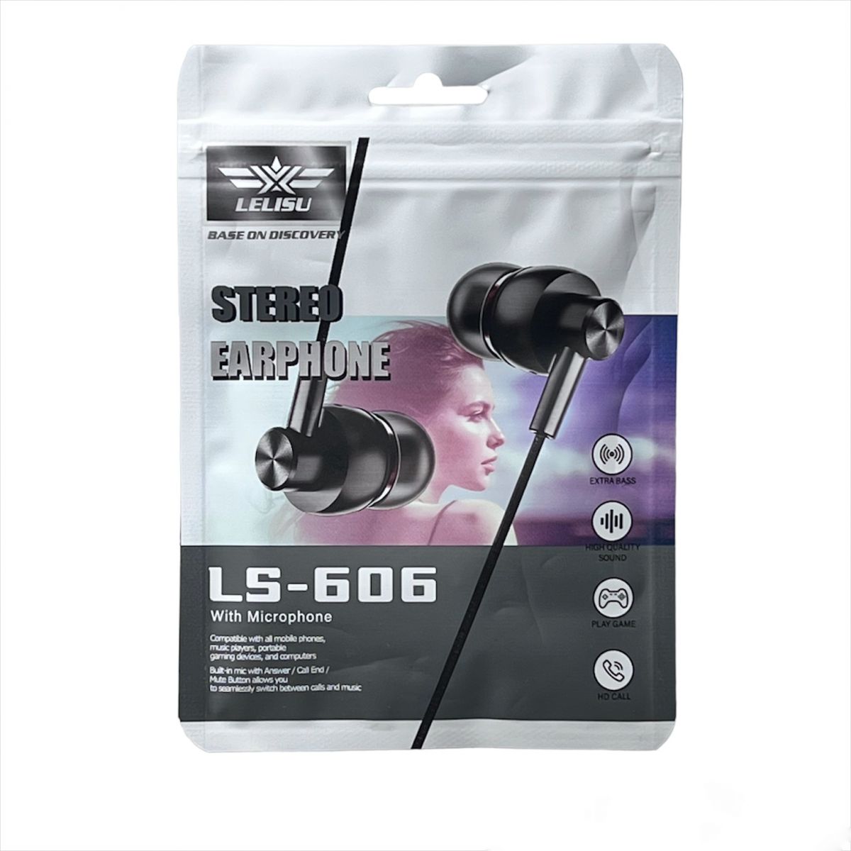 Наушники внутриканальные LELI LS-606, микрофон, кабель 1.2 м. Вакуумные наушники LELISU LS-606 - это идеальное сочетания звука, эргономичности и цены. Стильном дизайн и удобный AUX штекер. Модель аксессуара с микрофоном и кнопкой, используемой для ответа на звонок и регулировки прослушивания музыки. Аксессуар со стандартным разъемом mini-jack 3,5 мм. и динамиком диаметром 10мм.