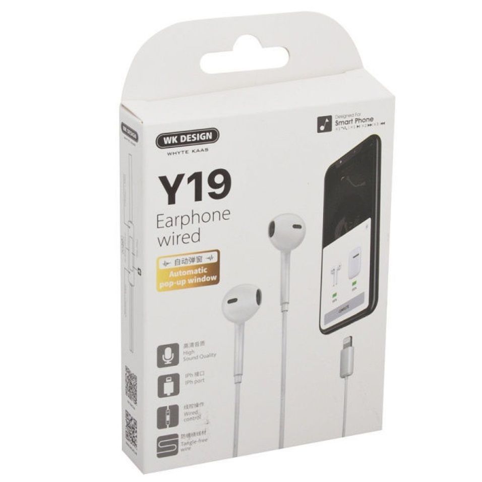 ГАРНИТУРА  WEKOME Y19 Lightning White - это проводная гарнитура с эргономичном дизайном в стиле Apple AirPods со штекером Lightning. На гарнитуре имеются кнопки навигации, которые позволяют переключать треки и регулировать громкость, не доставая телефон из кармана. Гарнитура имеет кристально чистый звук с ярко выраженными басами.
