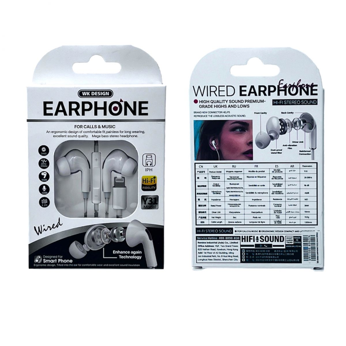 ГАРНИТУРА WEKOME Y31 Lightning White - вакуумные наушники с микрофоном и кнопками управления. Наушники разработаны с уникальным дизайном смещённых динамиков для максимального комфорта пользования. Эргономичная форма позволяет не уставать вашим ушам от долгого прослушивания аудио-контента. Наушники плотно прилегают, что гарантирует фиксацию даже при занятии спортом.