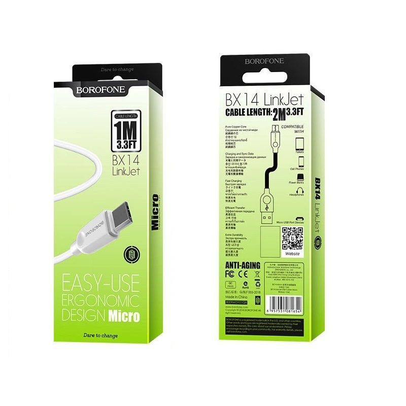 Читать все статьиКабель BOROFONE microUSB BX-14 1m White