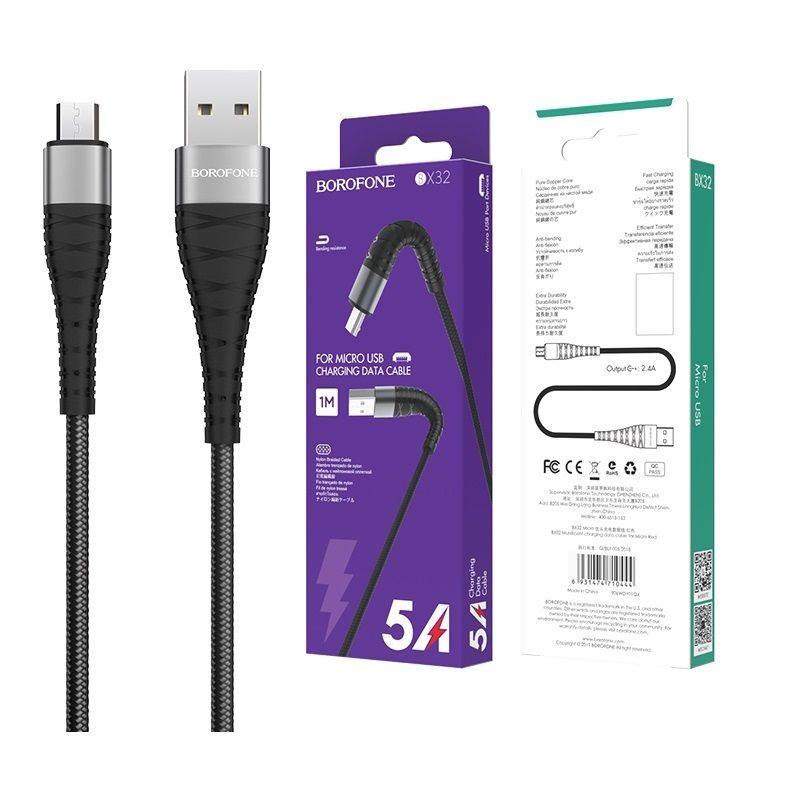 Читать все статьиКабель BOROFONE microUSB BX-32 5A 1m Black