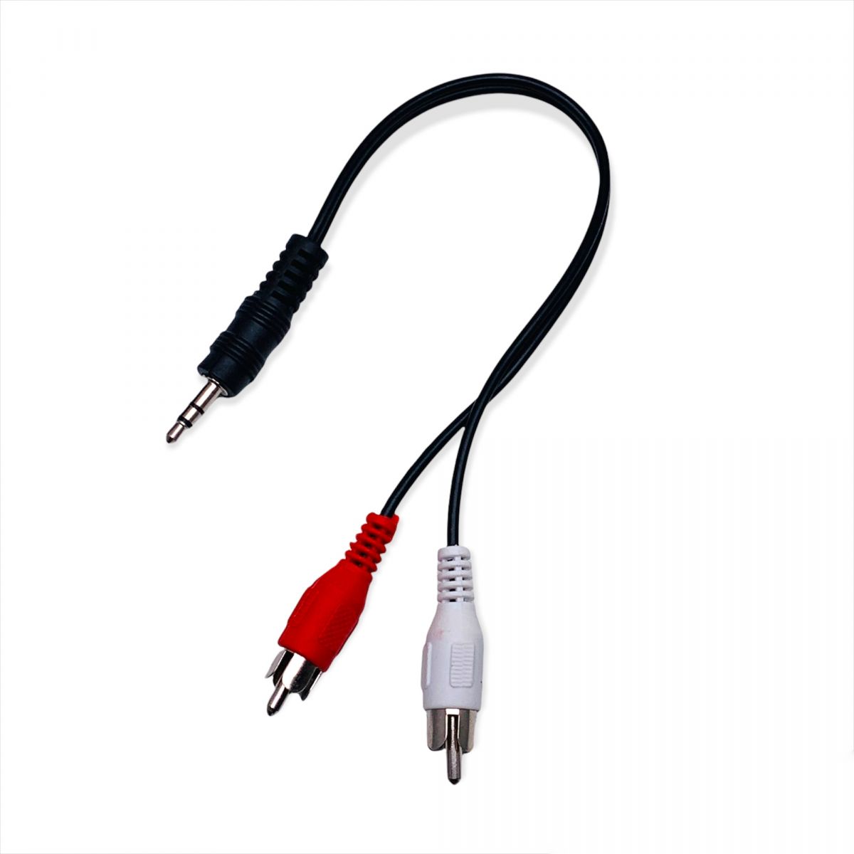 С одной стороны шнура располагается 3.5 мм штекер, с другой — 2 штекера разъема RCA