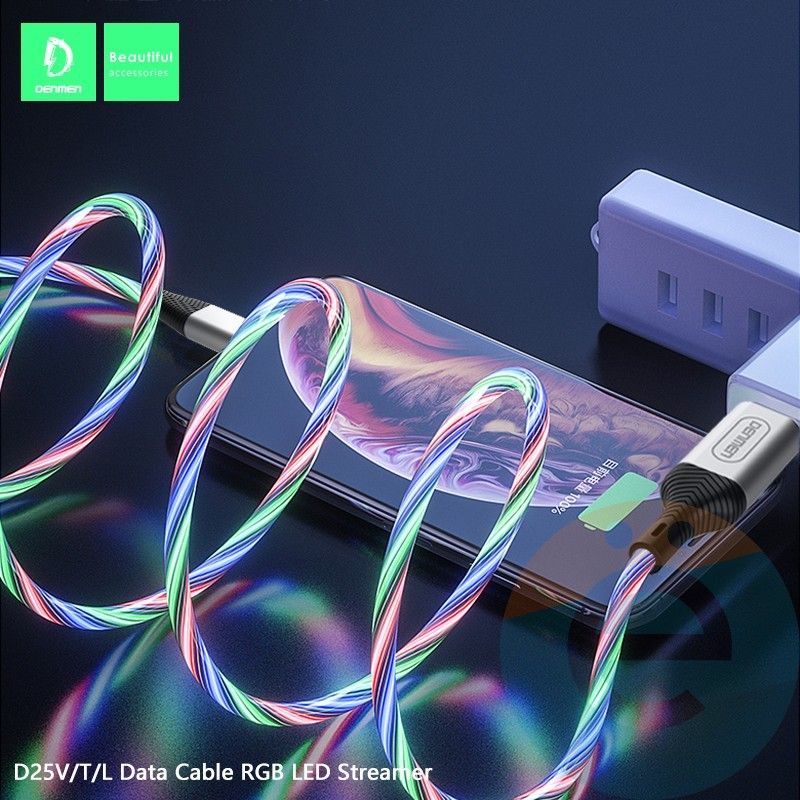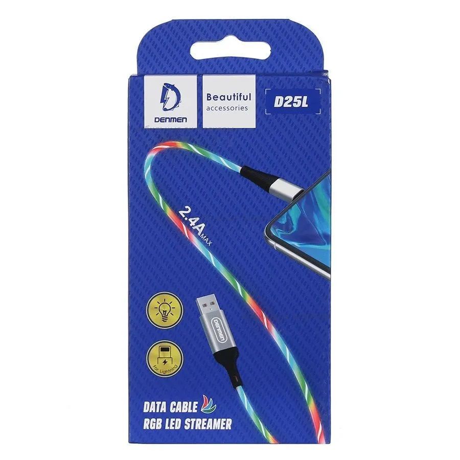 КАБЕЛЬ DENMEN D25L LIGHTNING 2.4A 1m RGB STREAMER