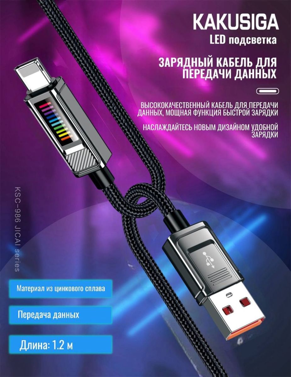 Читать все статьиКАБЕЛЬ KAKUSIGA KSC-986 LED LIGHTNING 2.4A Black