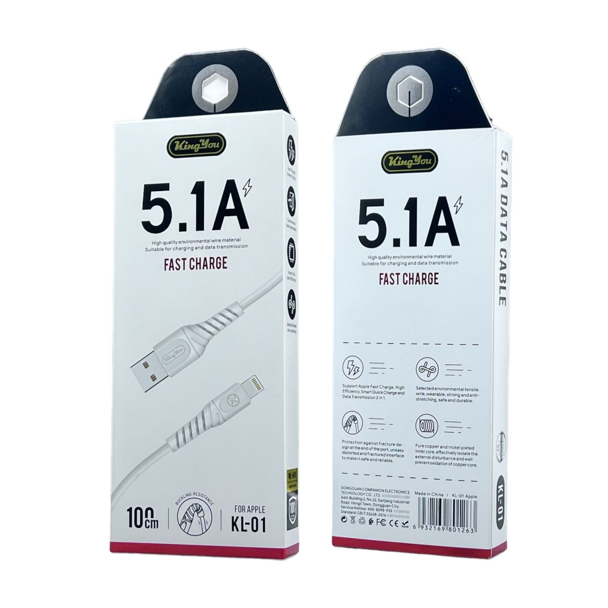 Кабель KINGYOU USB-LIGHTNING 5.1A KL-01 1m PVC White