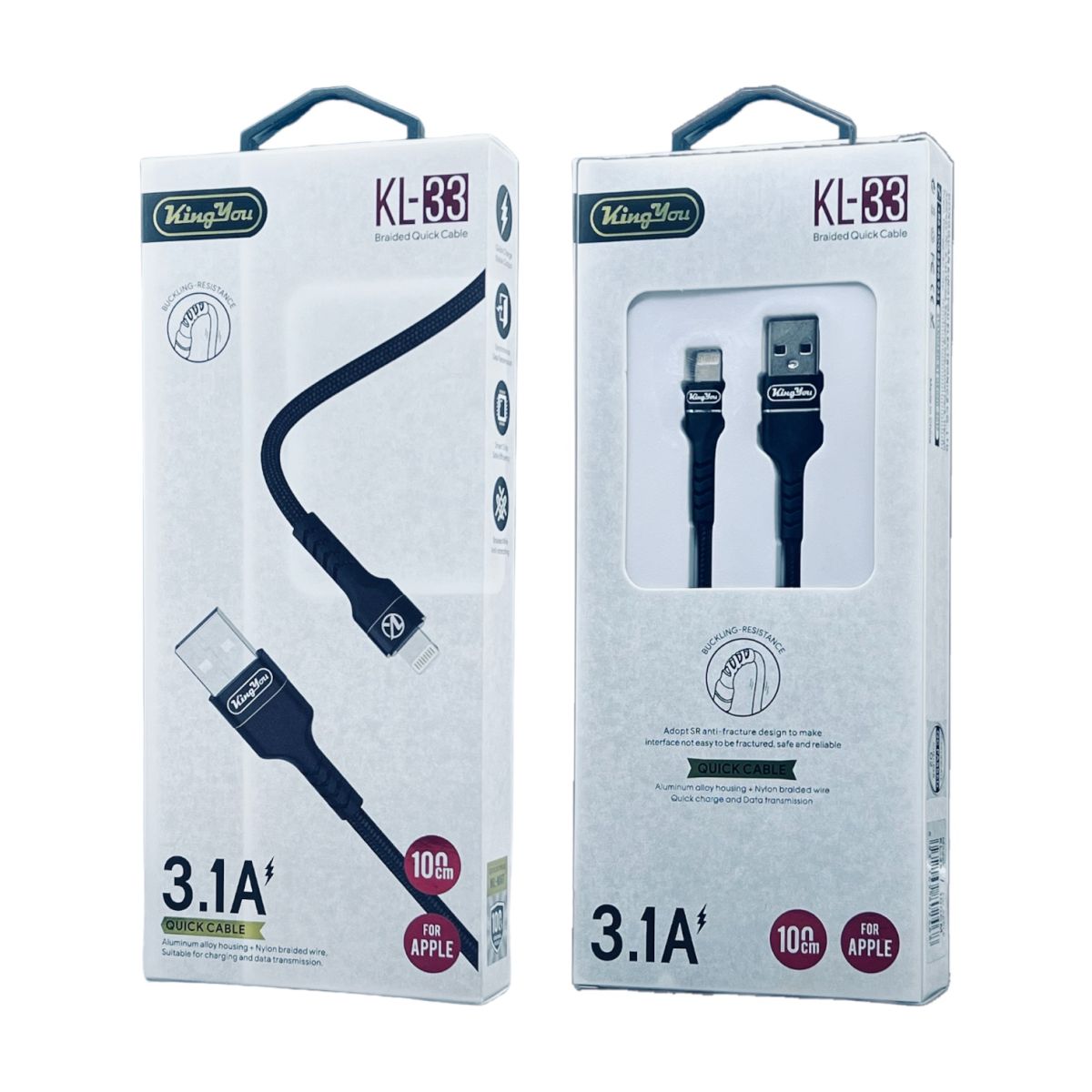 Кабель KINGYOU USB-LIGHTNING KL-33 3.1A 1m Woven nylon Black