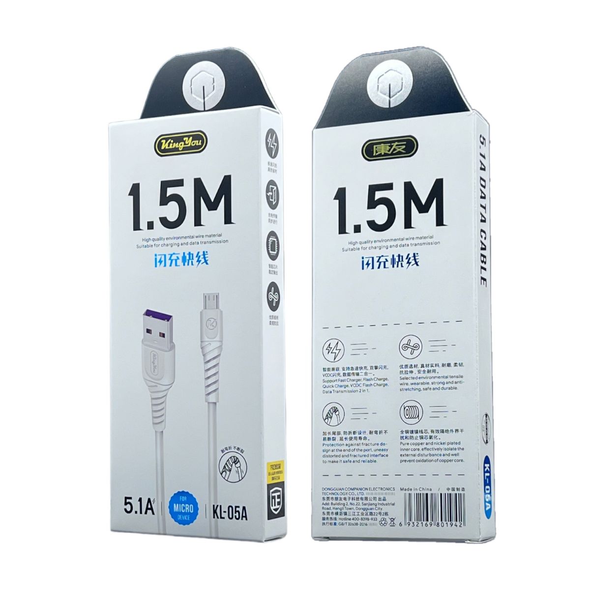 Кабель KINGYOU USB-MICRO KL-05A 5.1A 1.5m  PVC White