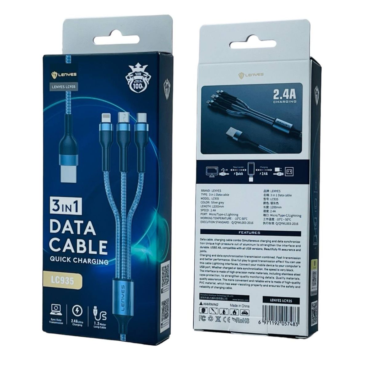 Читать все статьиКАБЕЛЬ LENYES 3В1 LC935 Silver Grey