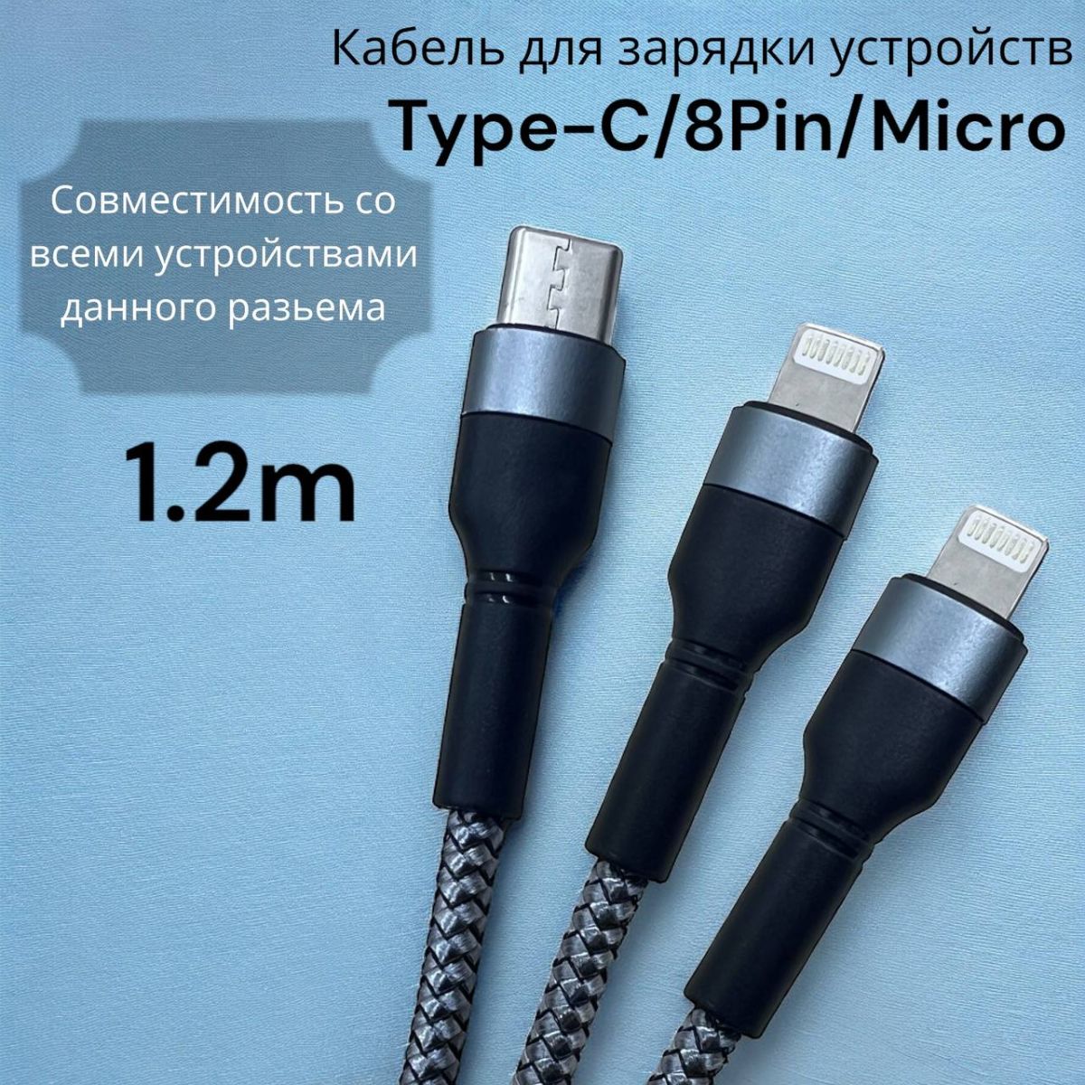 Представляем универсальный кабель 3-в-1 для зарядки мобильных устройств! Этот кабель оснащен разъемами microUSB, Type-C и Apple Lightning, что позволяет заряжать до трех устройств одновременно, экономя ваше время и пространство. Поддерживая силу тока до 2,4А, кабель обеспечивает быструю и эффективную зарядку ваших устройств.