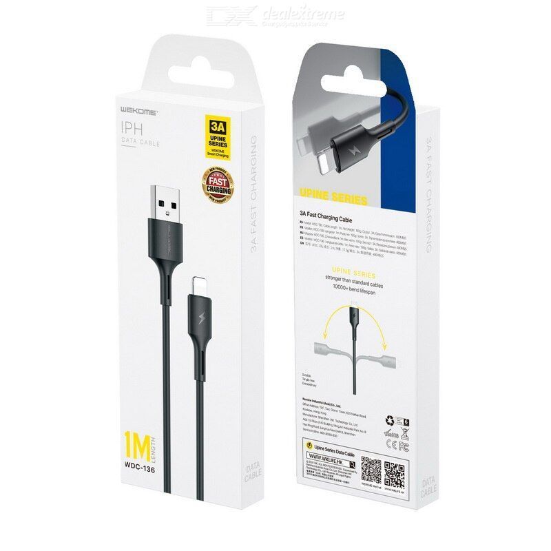 Читать все статьиКАБЕЛЬ WEKOME LIGHTNING WDC-136 3A 1м Black