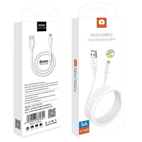 Читать все статьиКабель WUW X169 USB->Lighting 5A, 1m White