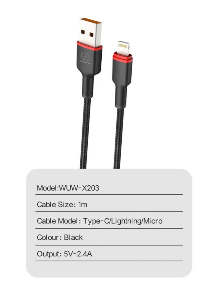 Читать все статьиКабель WUW X203 USB->Lighting 2,4A, 1m Black