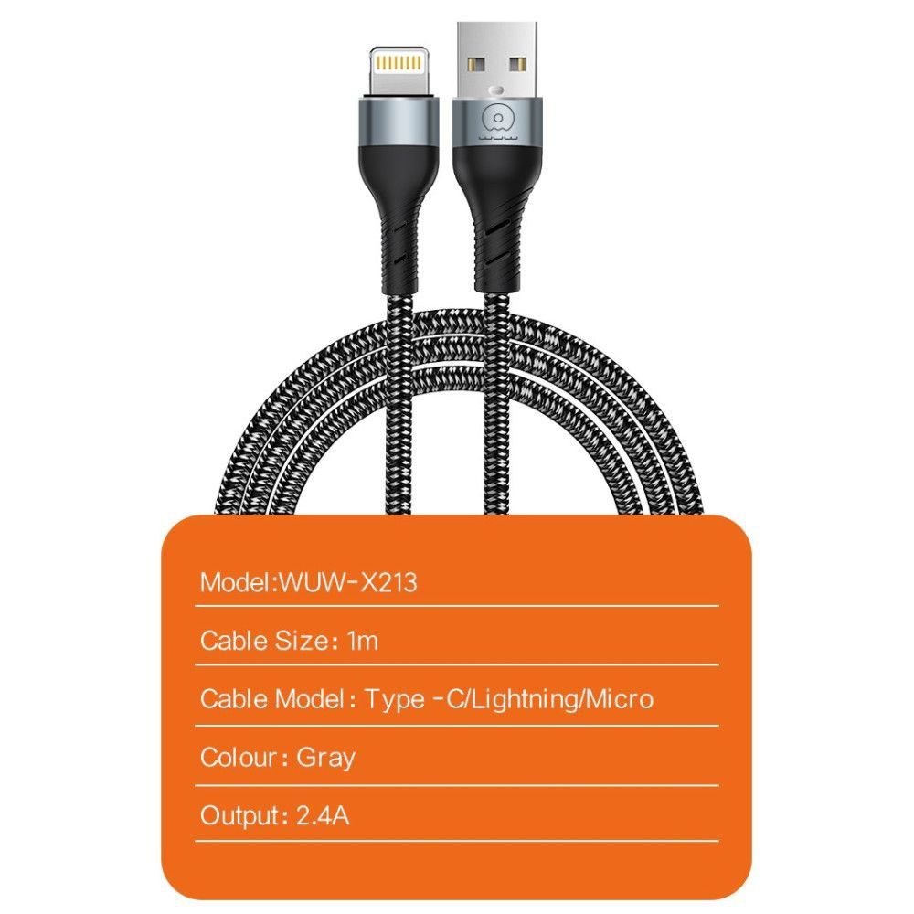Читать все статьиКабель WUW X213 USB->Lighting 2,4A, 1m Black