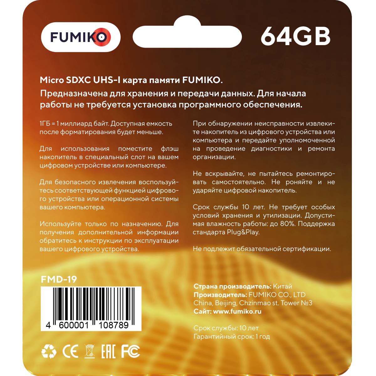 КАРТА ПАМЯТИ FUMIKO microSDHC 64GB CLASS10 UHS-I