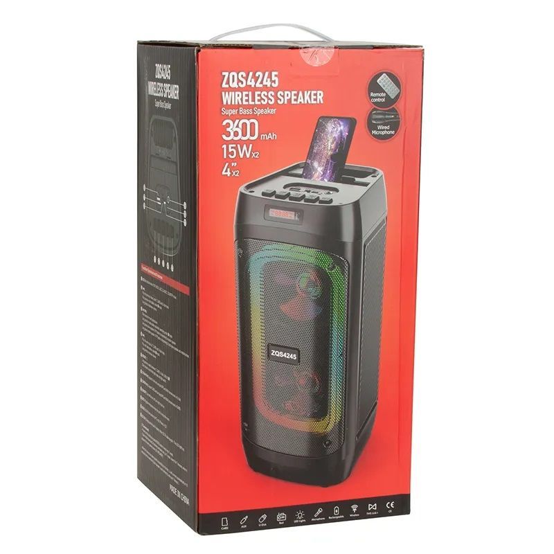 Читать все статьиКОЛОНКА КАРАОКЕ ZQS-4245 Wired mic Double 4inch