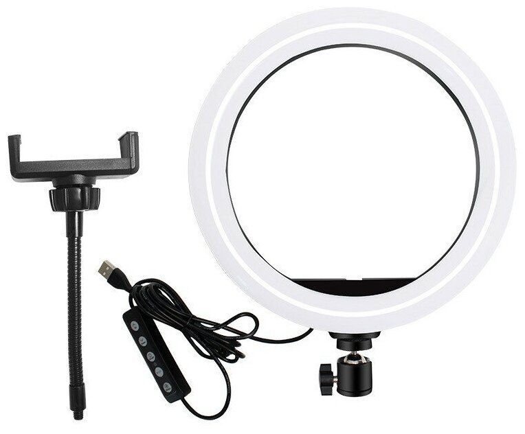 Многоцветная кольцевая лампа для фото и видеосъёмки MJ26 без штатива. Универсальное и необычное осветительное устройство дополнительного освещения. В данной модели несколько режимов освещения белого цвета, с выбором от холодного до теплого, предусмотрены и полноцветные RGB режимы. Теперь, вам не понадобится длительно редактировать цветовой диапазон в фотографиях, накладывать фильтры, все можно сделать заблаговременно, настроив нужный цвет на самой цветной лампе. Кроме того, с помощью такой лампы вы можете создавать различную атмосферу в доме, можете включить автоматический режим цветового переключения и использовать универсальную лампу в качестве свето-музыки. Качественный и профессиональный свет лампы подходит для фотографов, блогеров, сценического освещения, салонов красоты, практически всем, кто связан с фото и видео творчеством. Кольцо диаметром 26 сантиметра оснащено скругленным рассеивателем, которое идеально и равномерно направит качественный свет по всей поверхности объекта. Свет у лампы качественный, яркий, мягкий, без какого-либо мерцания. Именно такие лампы создают этот потрясающий эффект ангельских глазок на фотографиях. В свободное от основной работы время, универсальная кольцевая лампа может служить прекрасным осветительным прибором в интерьере, с регулируемой яркостью, цветом, температурой и направленностью свечения, создающий мягкий и комфортный для вашего зрения свет. Питание лампы от USB.
