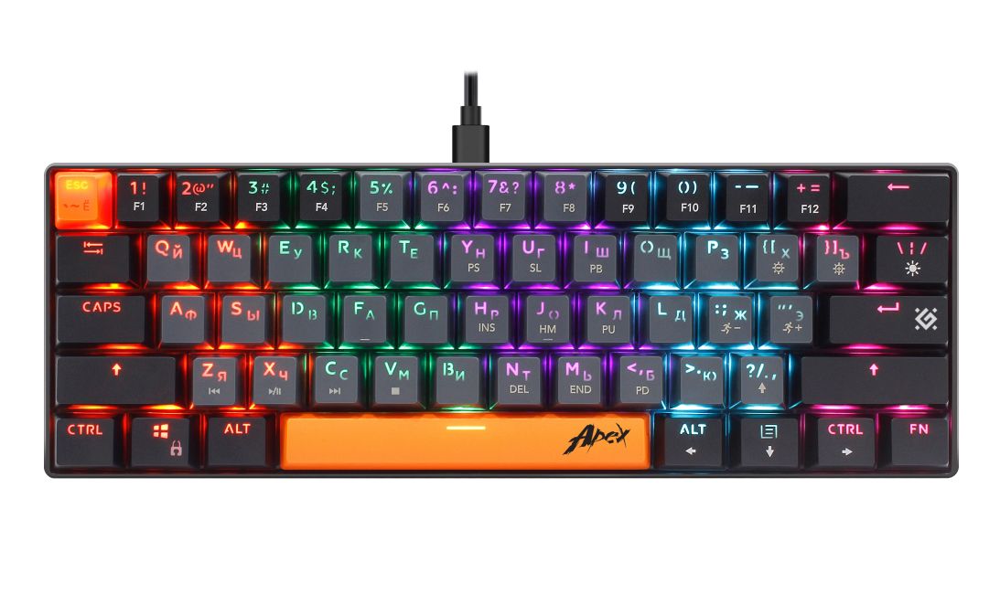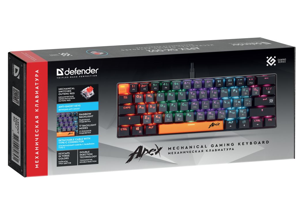 Читать все статьиМеханическая клавиатура Apex GK-002 RU,3цв/серый,радуж,61к,крас.св DEFENDER