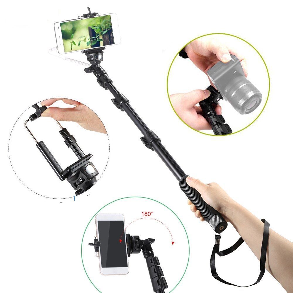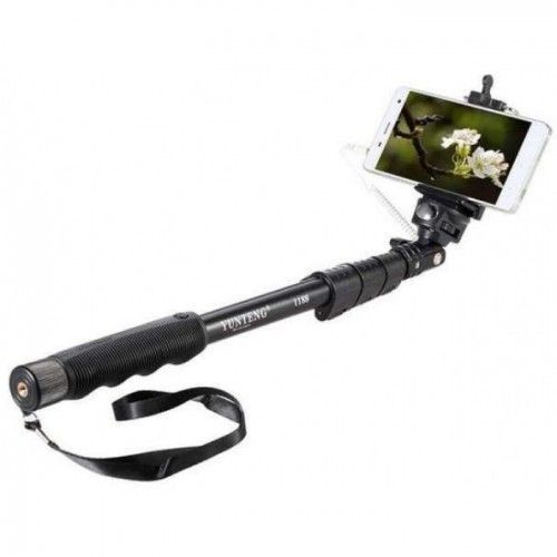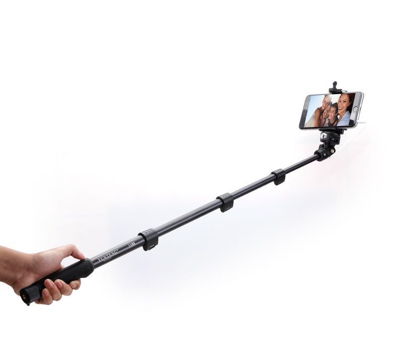 Монопод Yunteng YT-1188- отличный выбор для любителей качественных аксессуаров. Перед нами один из самых функциональных моноподов подобного рода на рынке. Преобладающим материалом в конструкции является довольно прочный алюминий, что гарантирует устойчивость даже при использовании крупных смартфонов и даже фотоаппаратов. Кстати, благодаря универсальному креплению у вас есть возможность закрепить как смартфон или экшн-камеру, так и даже зеркальный фотоаппарат. Максимальная длинна равняется 1280 миллиметрам, при этом палка для селфи Yunteng YT-1188 состоит из трех секций, каждая из которых фиксируется зажимом. Дополнительный комфорт во время использования гарантирует рукоятка, покрытая резиной с ухватистой текстурой.