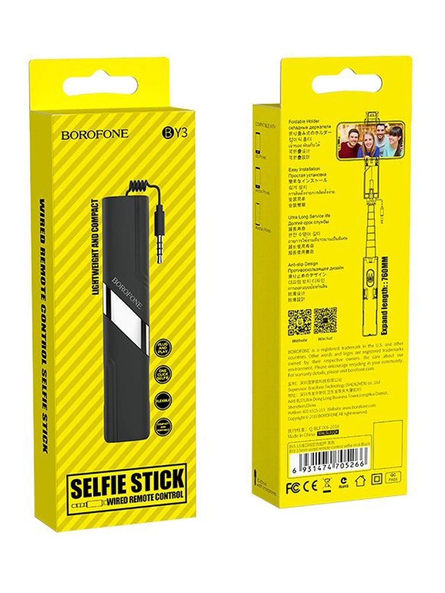 BOROFONE BY3 селфи палка с проводным управлением, максимальная длина 760mm, для 4.7-6 дюймовых мобильных телефонов.