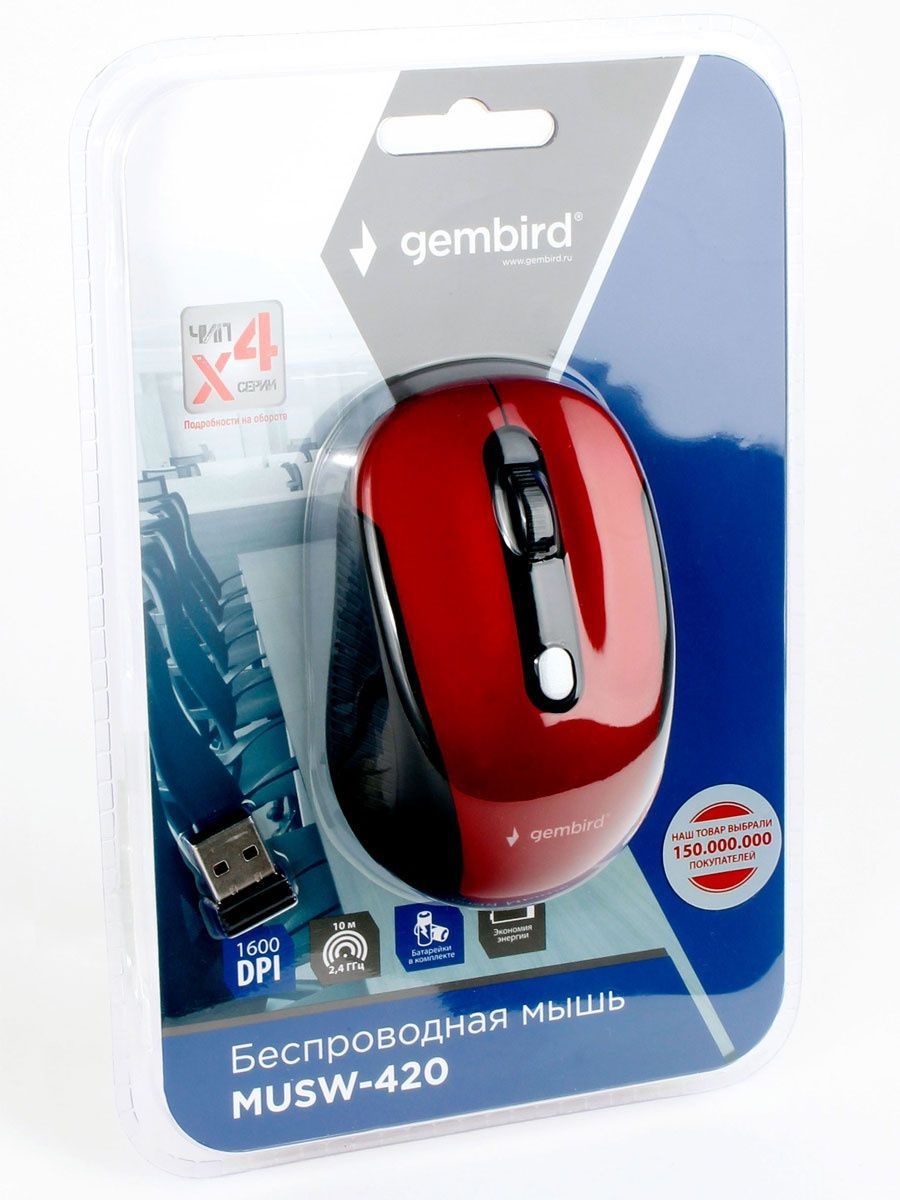 Читать все статьиМЫШЬ БЕСПРОВОДНАЯ GEMBIRD MUSW-420 красная