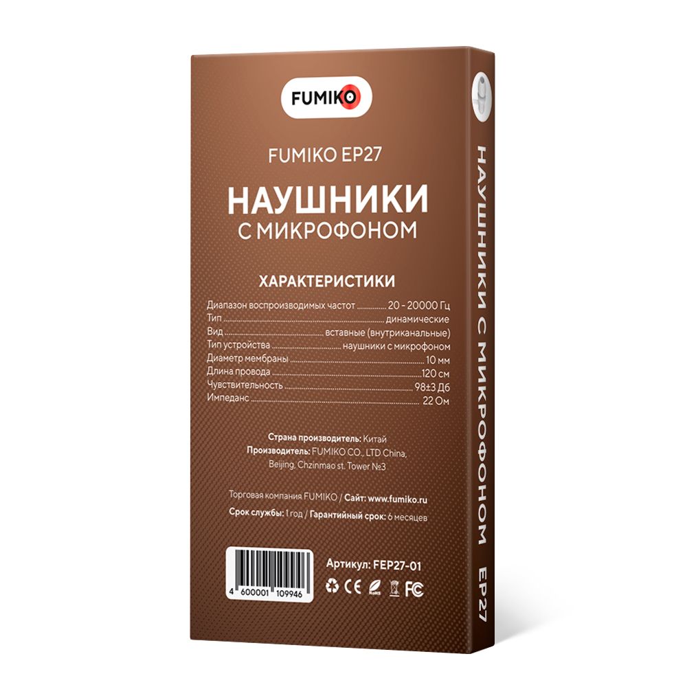 Читать все статьиНаушники проводные FUMIKO EP27 белые