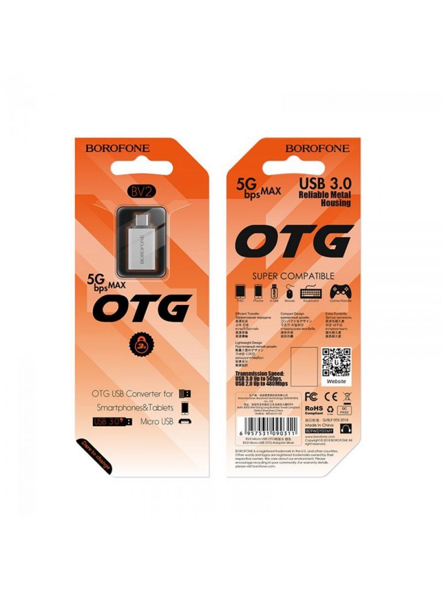 Читать все статьиПереходник BOROFONE OTG microUSB->USB 3.0 BV2
