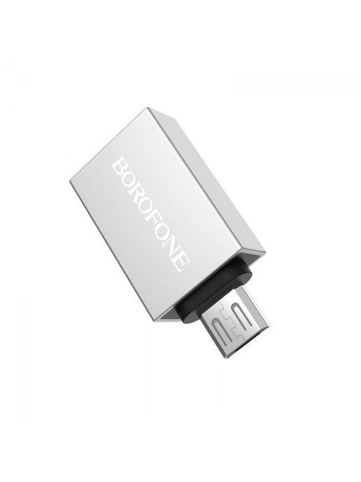 Адаптер - переходник Borofone BV2, адаптер USB-A на Micro-USB, конвертер, поддержка OTG, USB 3.0. Корпус адаптера USB - из алюминиевого сплава, легкий и портативный. Функция: подключите мобильный телефон Micro USB к USB-диску / переносному жесткому диску (не более 1 ГБ) или к мобильному телефону Lightning / Type-C через кабель (не входит в комплект).