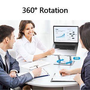 Стойка для компьютера не только предлагает регулируемый диапазон высоты от 2,1 до 21 дюйма, но также может вращаться на 360 градусов. Вращающаяся площадка на базе плавно поворачивается, поэтому вы можете свободно перемещать экран ноутбука с легким усилием, когда общаетесь по работе, идеально подходит для личного использования.