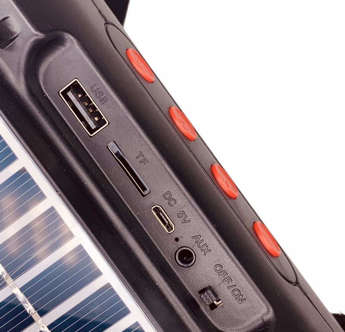 Симпатичная и компактная с FM радио + внешней антенной и солнечной панелью. В отличие от большинства других, тут нет необходимости подключать внешний кабель чтобы был уверенный прием радиостанций, т.к. антенна уже имеется.
