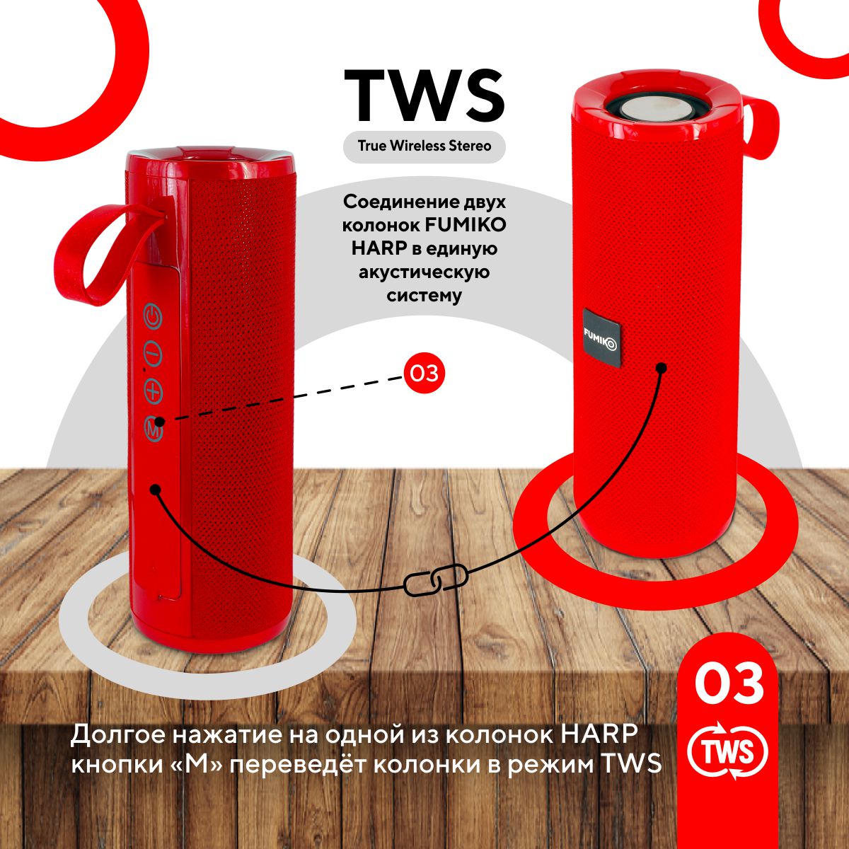Портативная колонка FUMIKO HARP — мощный стереозвук, который звучит громко, чётко и с душой!