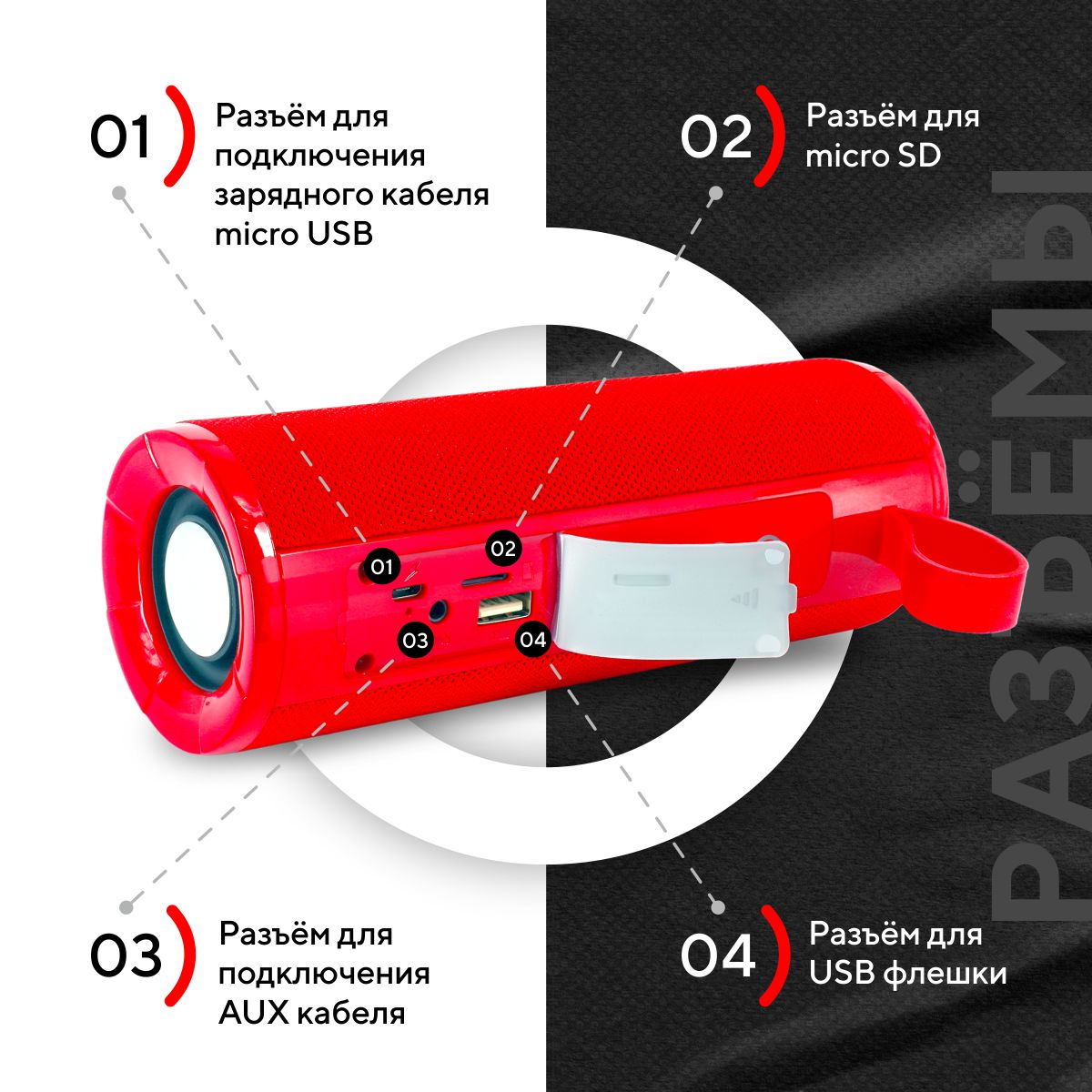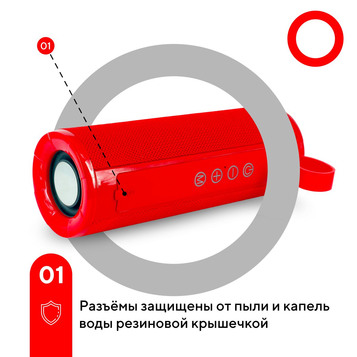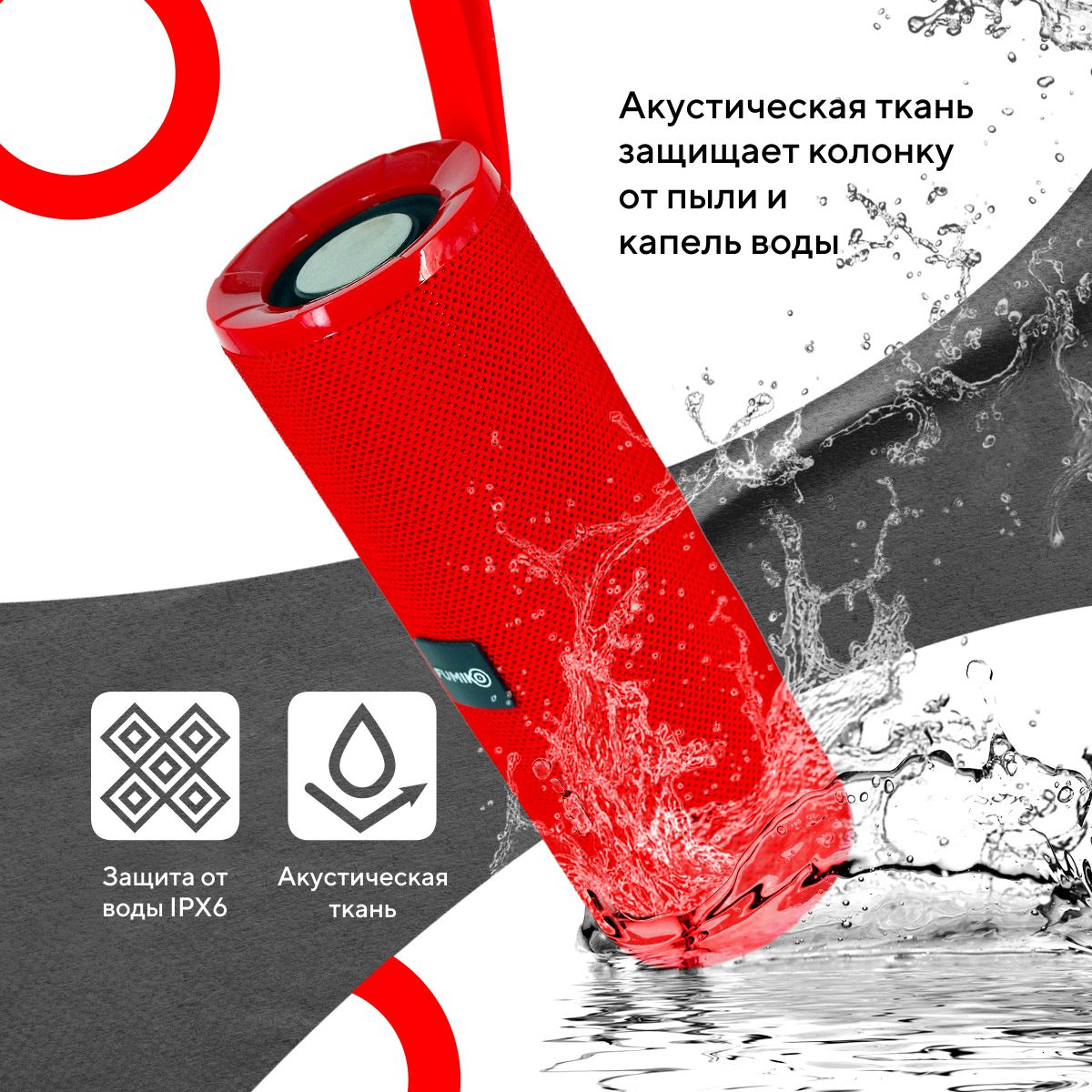 Компактные размеры (180×66,2×65 мм) и лёгкий вес (всего 352 г) делают колонку идеальной для использования дома, во время учёбы, прогулок и поездок. Яркий красный корпус из прочного пластика с тканевой отделкой выделяется на фоне других и подчёркивает ваш стиль.