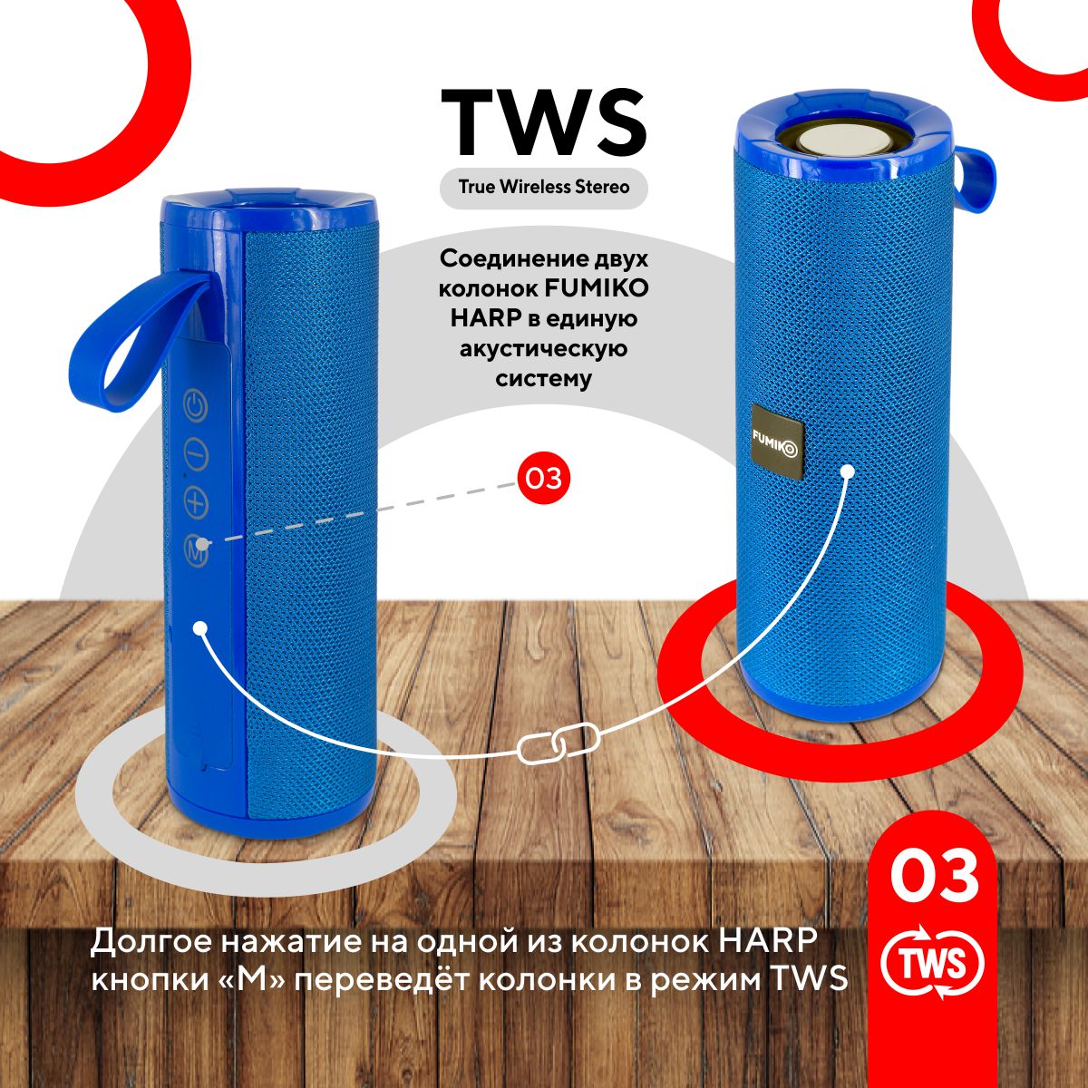 Портативная колонка FUMIKO HARP — мощный стереозвук, который звучит громко, чётко и с душой!