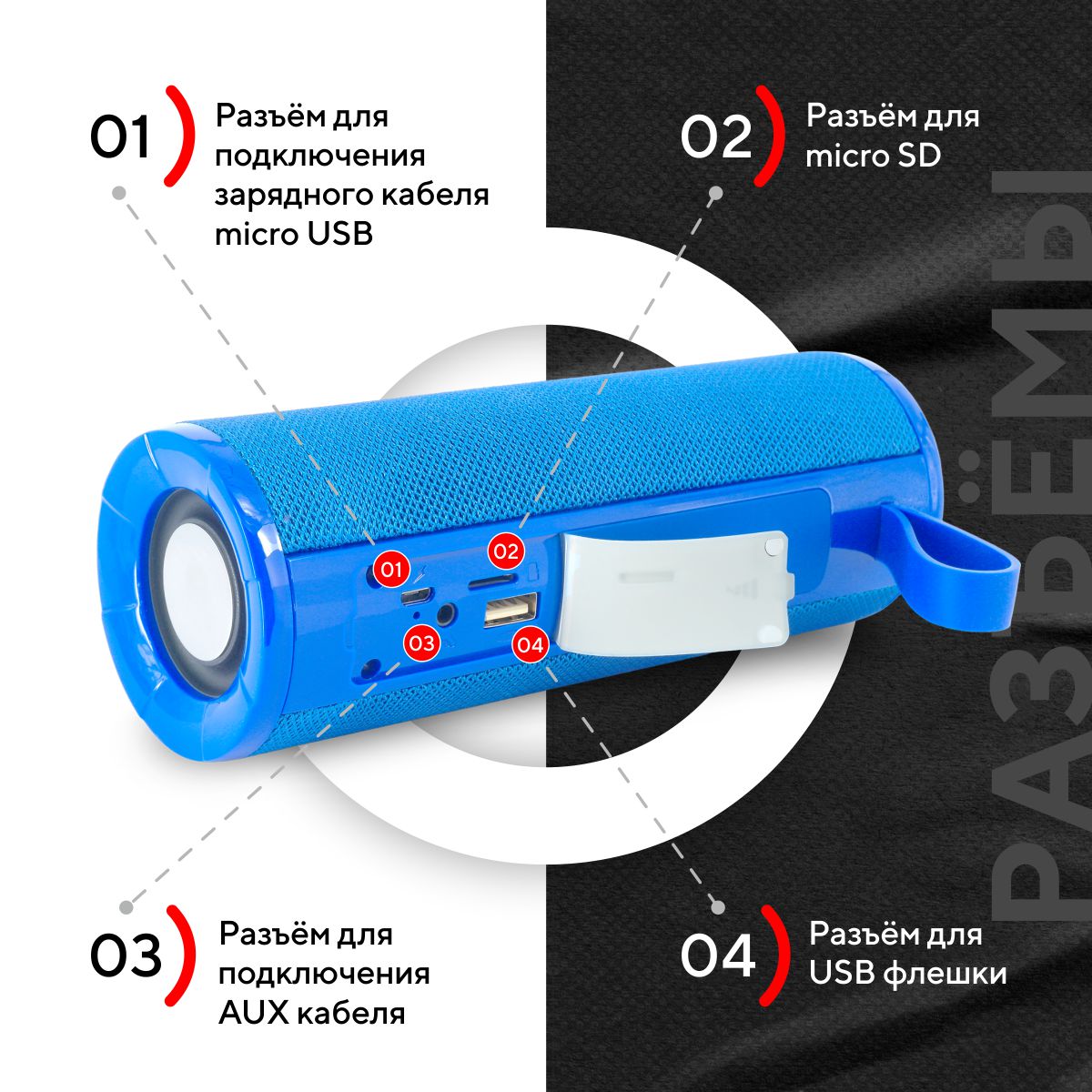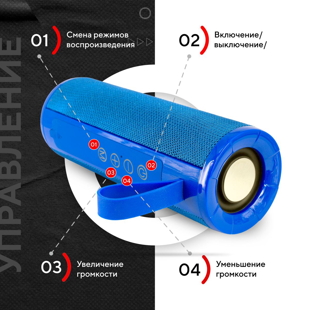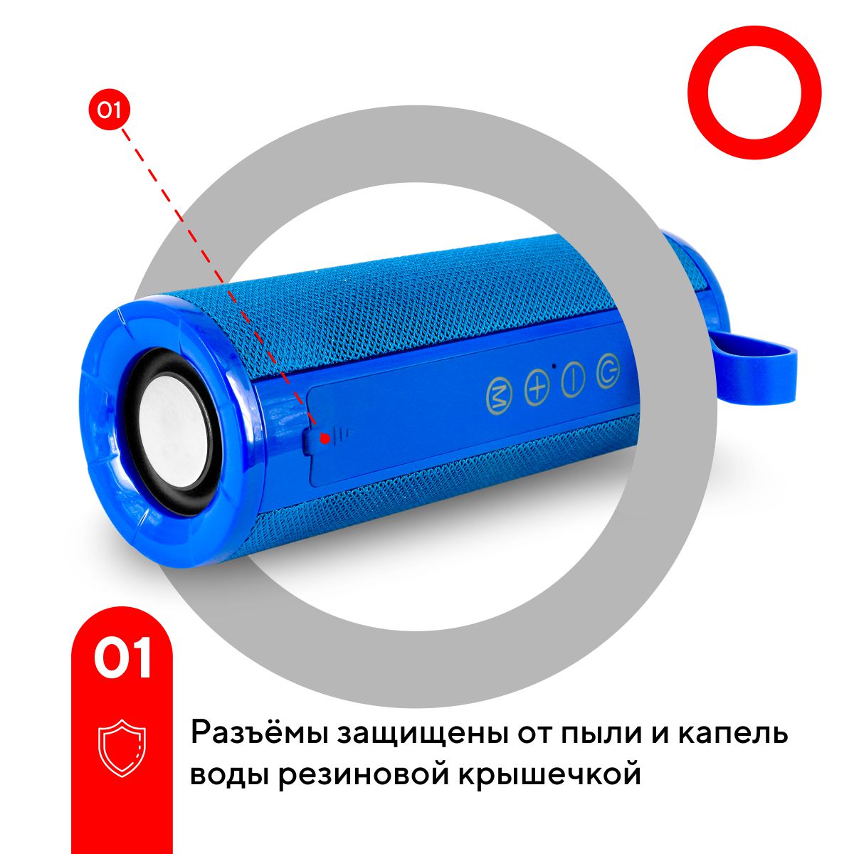 Компактные размеры (180×66,2×65 мм) и лёгкий вес (всего 352 г) делают колонку идеальной для использования дома, во время учёбы, прогулок и поездок. Яркий синий корпус из прочного пластика с тканевой отделкой выделяется на фоне других и подчёркивает ваш стиль.