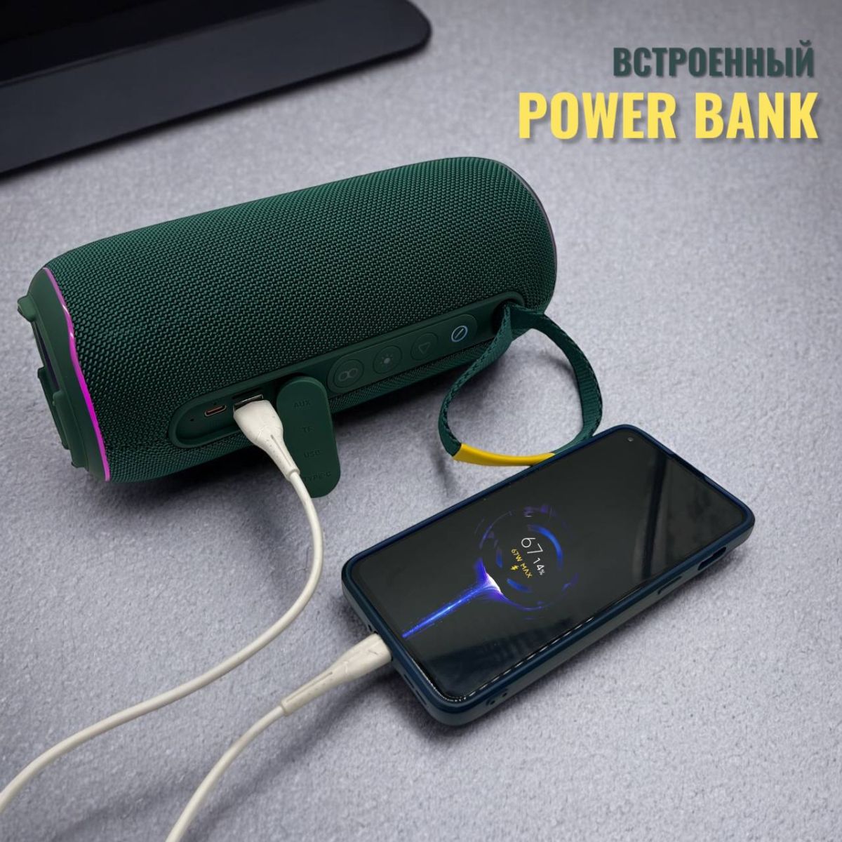 Колонка оснащена режимом Power Bank и может использоваться для зарядки других устройств.