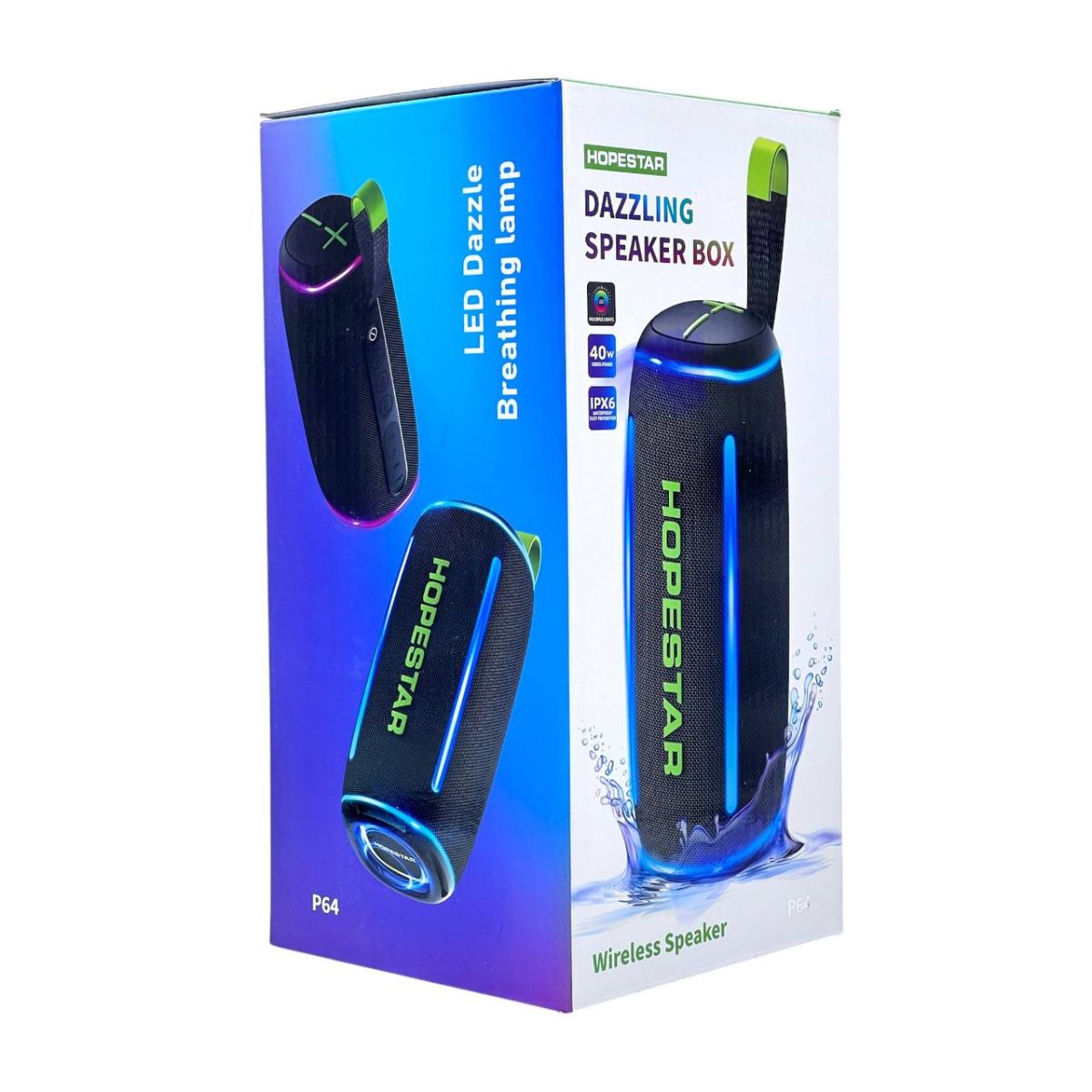Hopestar P64 — это современная портативная колонка, которая сочетает в себе превосходное качество звука, стильный дизайн и функциональность. Благодаря мощности 40 Вт она обеспечивает насыщенный и динамичный звук, который станет идеальным спутником на вечеринках, прогулках или дома.