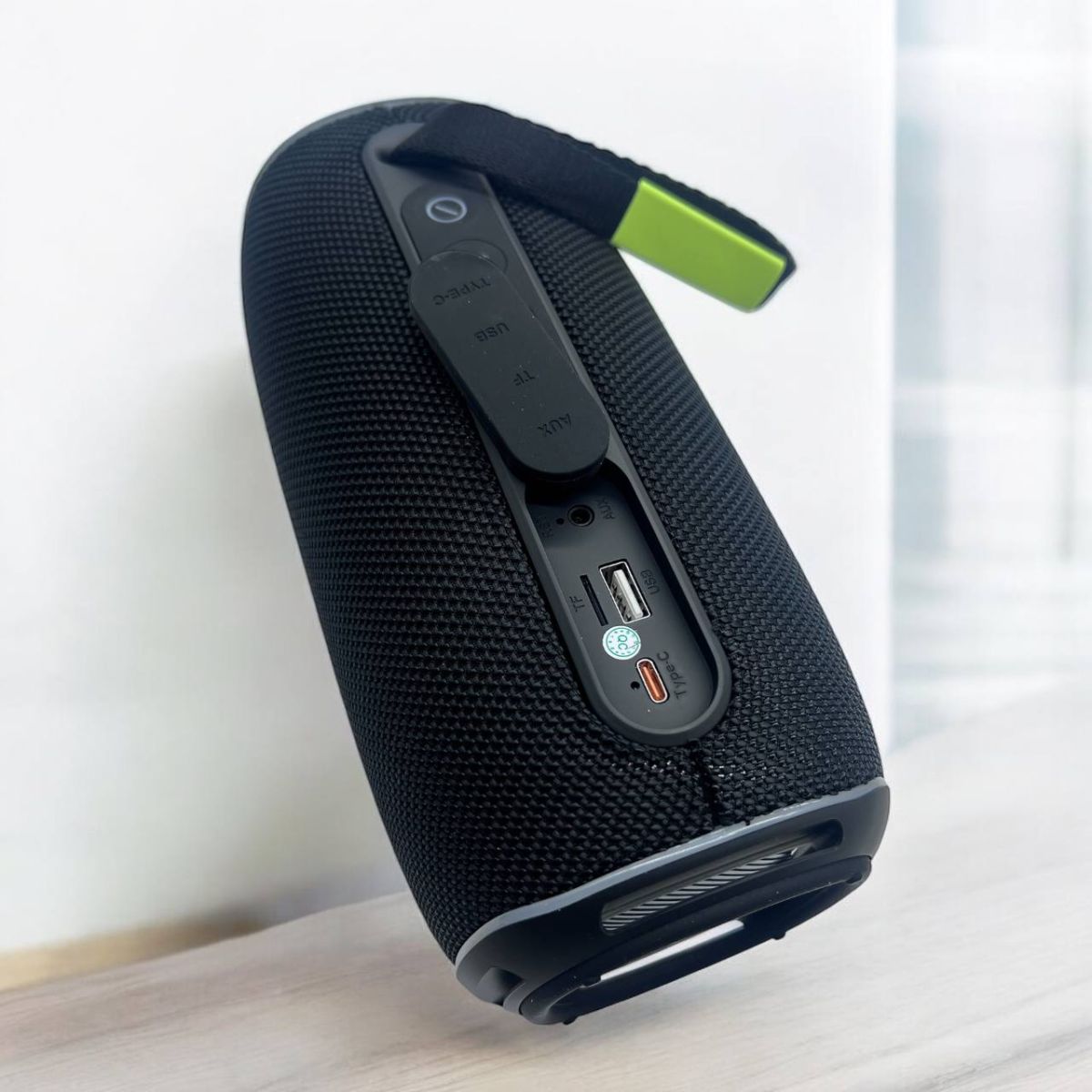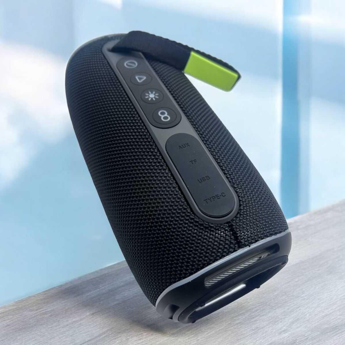 Колонка изготовлена из высококачественных материалов: ABS-пластика, металла, резины и синтетической ткани, что делает её не только стильной, но и устойчивой к повседневным нагрузкам. Защита по стандарту IPX6 позволяет использовать её даже в условиях повышенной влажности, будь то дождь или брызги у бассейна.