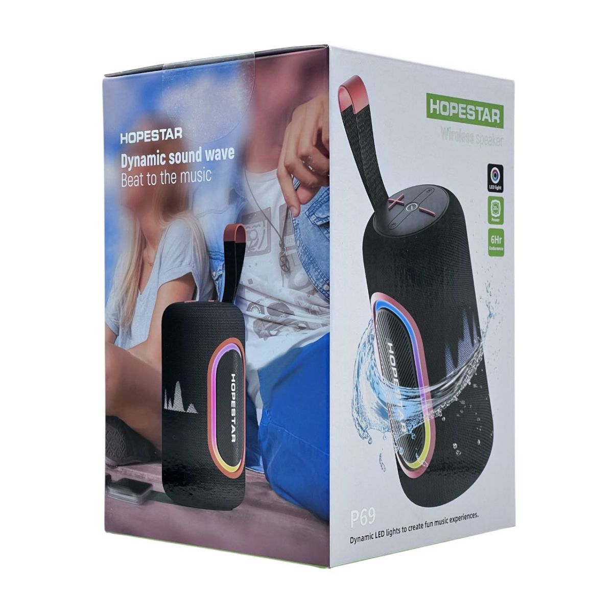 Hopestar P69 — это компактное и стильное решение для настоящих ценителей качественного звука. Благодаря своим небольшим размерам и лёгкому весу колонка легко помещается в рюкзак или сумку, а также может быть закреплена на ремне. Она станет идеальным спутником в любой ситуации: на прогулке, в путешествии или дома.