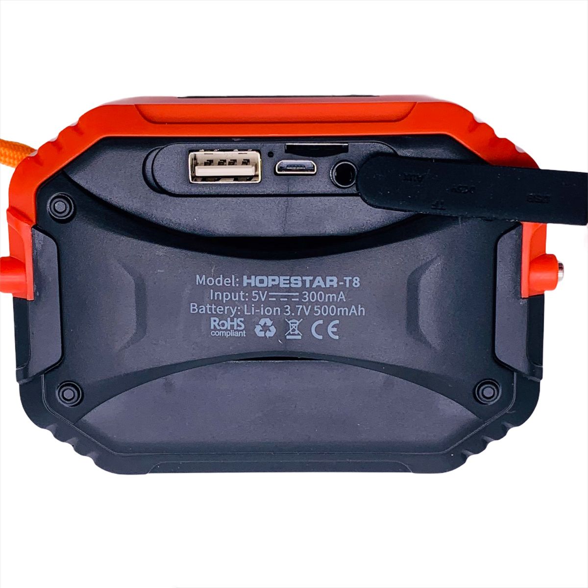 Беспроводная колонка Bluetooth Hopestar T8 - мини на 3 Вт, оптимальное мультимедийное решение, как для помещений, так и для улицы. Колонка легко соединяется с смартфонами, планшетами или другими проигрывателями, которые поддерживают технологию Bluetooth и передает звук в высоком качестве на расстоянии до 10м. В колонку встроен приемник FM радиоволн.