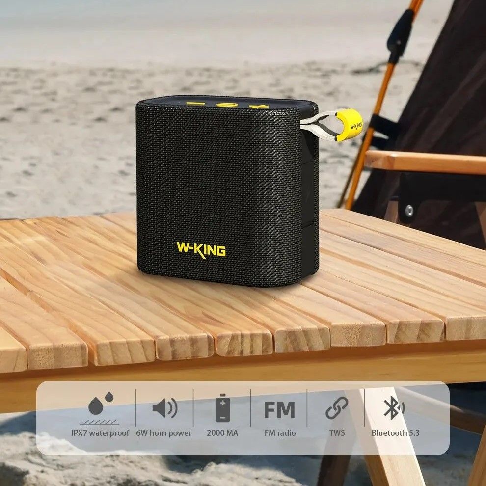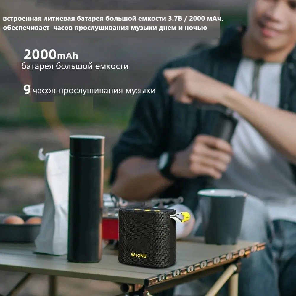 Беспроводная влагозащищенная колонка W-King D2 черного цвета мощностью 6 Вт. Идеальный спутник для любителей активного отдыха в любую погоду и в любых условиях, благодаря влаго- и пыле защищенности по классу IPX7. Эта портативная акустика не займет много места в сумке или рюкзаке, в крайнем случае ее можно просто подвесить за прочной прорезиненной петельке. . Крупный и глубокий для такого класса колонок драйвер обеспечит отличное качество звучания, а слот для TF (SD) карты и AUX вход позволяет воспроизводить музыку не только c bluetooth источника. Так же стоит отметить наличие FM радио с автоматическим поиском станций (работает в зоне уверенного приема).