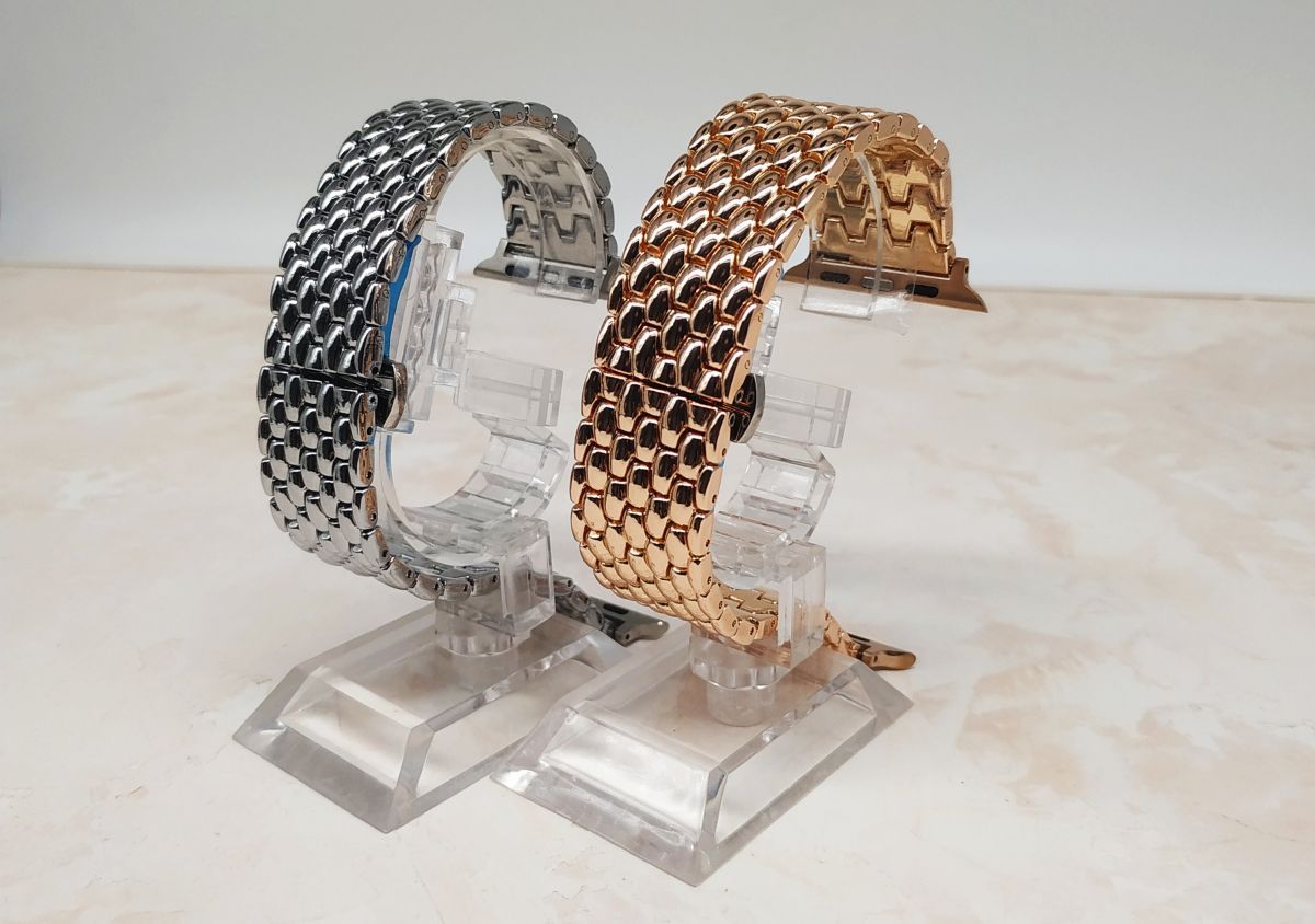 РЕМЕШОК APPLE WHATCH 42/44/45mm LUXURE - стильный и качественный аксессуар, выделяющийся необычной конструкцией. Модель собрана из звеньев соединенных между собой. Внешний вид позволит смарт-часам с таким ремешком стать стильным дополнением к Вашему образу. Для изготовления звеньев ремешка используется нержавеющая сталь - износостойкий и прочный материал. Ширина крепления 42/44/45 позволяет использовать данный аксессуар со множеством моделей Apple watch. Широкий ряд дизайнерских решений позволит Вам подобрать ремешок под свой вкус, стиль и образ.