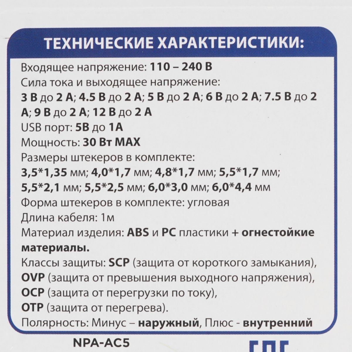 СЕТЕВОЙ АДАПТЕР GEMBIRD NPA-AC5 30Вт
