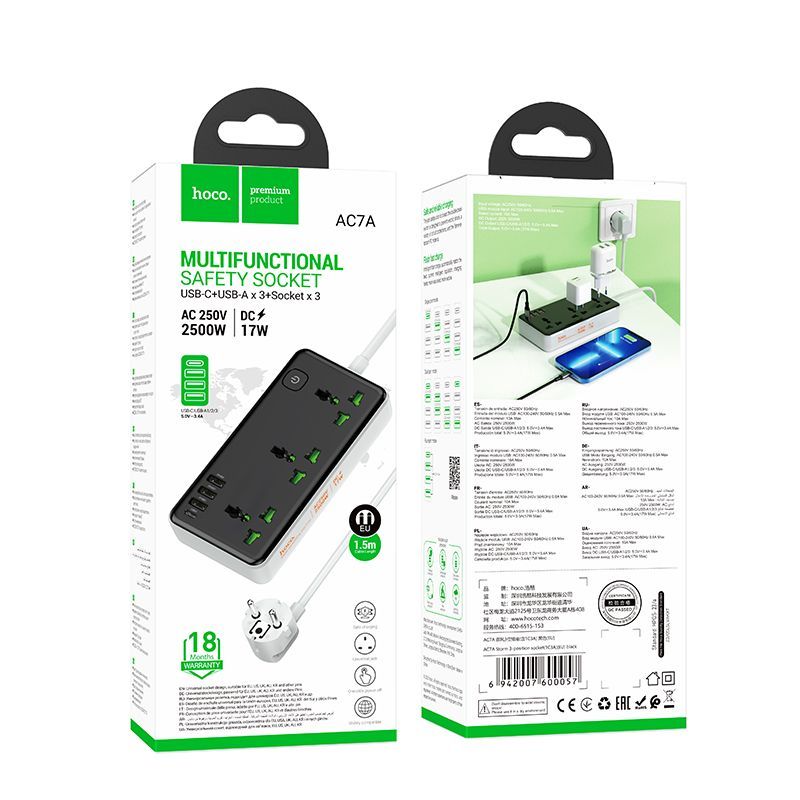 Читать все статьиСЕТЕВОЙ ФИЛЬТР HOCO AC7A Storm (1C3A)(EU) Black