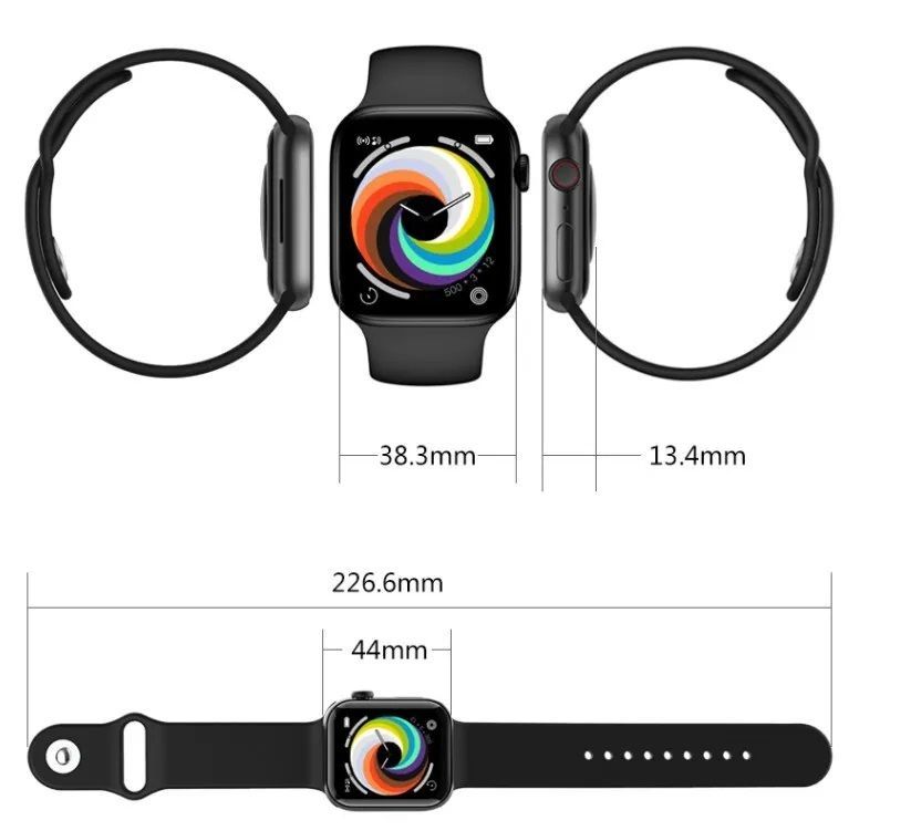 Поддержка 1,75-дюймовый полный экран t-ouch, вызов Bluetooth, частота сердечных сокращений, кровяное давление, кислород крови, режимы muti-sports, замена 44-мм ремешка, музыка Bluetooth, может таможенные циферблаты, погода, разделенный экран, кнопка поворота, 3 UI.
