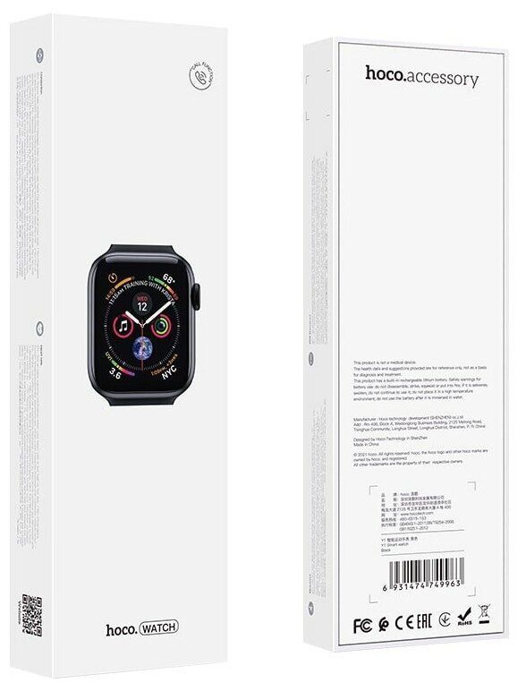 Умные часы Hoco Y1 оснащены ярким цветным сенсорным дисплеем с высоким разрешением. Поддерживают большинство современных функций, включая мониторинг сердечного ритма и различные спортивные режимы. Дополнительно часы оснащены будильником, секундомером, функцией побуждения к активности, шагомером и счетчиком пройденного расстояния, а также возможностью управления фото-камерой смартфона и музыкой. Синхронизация со смартфоном производится посредством беспроводной связи Bluetooth. Без подзарядки часы работают до 3-х дней.