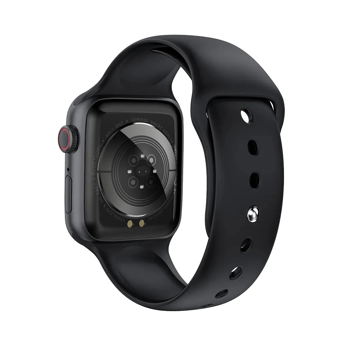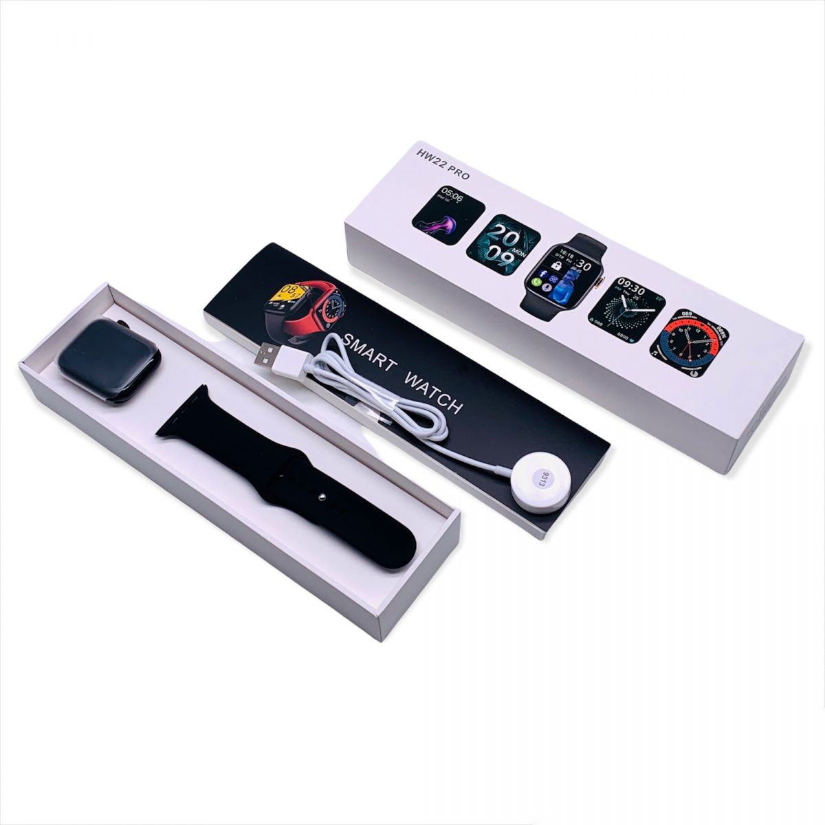 Смарт-часы Smart Watch HW22 PRO, ПРЕМИУМ качества. Экран 1,75 дюйма, блокировка паролем, с функцией функционального фитнес-трекера. Эксплуатация часов сопровождается отзывчивым сенсором и качественной синхронизацией между подключаемыми устройствами. Поддерживает подключение с помощью Bluetooth к смартфонам на платформах Android или iOS. Водонепроницаемый корпус с минималистичным дизайном имеет уровень защиты IP68 и выполнен из высококачественного аллюминиего сплава. Встроенный в трекер шагомер будет считывать и синхронизировать данные о пройденных километрах и потраченных калориях. Задняя крышка часов оснащена оптическим пульсометром. Также браслет имеет функции: тонометра, мониторинга качества сна, напоминания о малоподвижности - которые станут полезными для людей, следящих за своим здоровьем. Описание cмарт-часов HW22 plus 44mm: боковое колесико и боковая кнопка функциональные