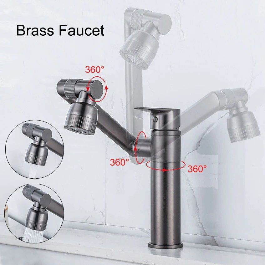 Латунный смеситель для раковины с поворотом на 360 градусов из высококачественной латуни - один из самых популярных среди сантехники. Смеситель экологически безопасный при использовании, так как все его водные пути подвергались ультразвуковой обработке. Современный кран с поворотным излитом 360 можно поставить на кухню, в ванную, душевую комнату. У данного смесителя керамический картридж и поворотный излив в разные стороны . Поверхность смесителя нустойчив к царапинам и перепадам температуры, легок в уходе.