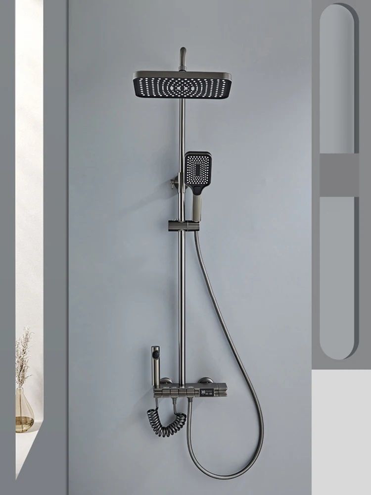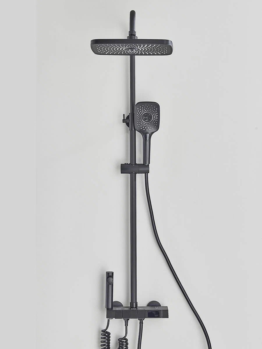 Вес системы составляет внушительные 5,8 кг, но её легко установить. Точная регулировка температуры воды и плавное нажатие клавиш обеспечивают максимальный комфорт во время душа. Информативная LED-панель с термостатом показывает, сколько времени вы уже проводите в душе, а также отображает текущую температуру воды.