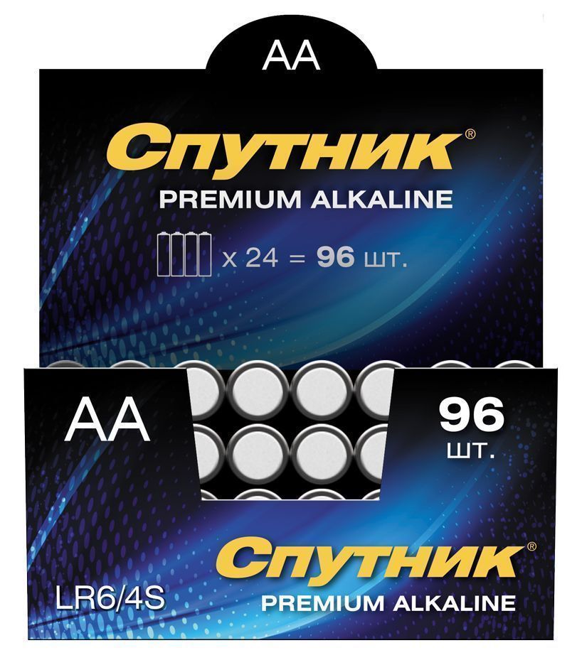 Элемент питания СПУТНИК LR6/4S (96/384) PREMIUM ALKALINE.