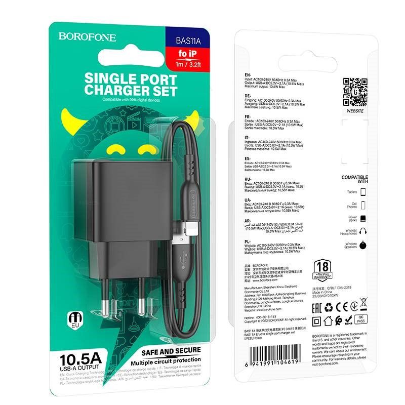 Читать все статьиСЗУ BOROFONE BAS11A 1USB-A+IP8 10.5W Black