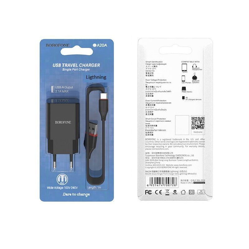 Читать все статьиСЗУ BOROFONE BA-20A 1*USB+Lighting 2.1A Black
